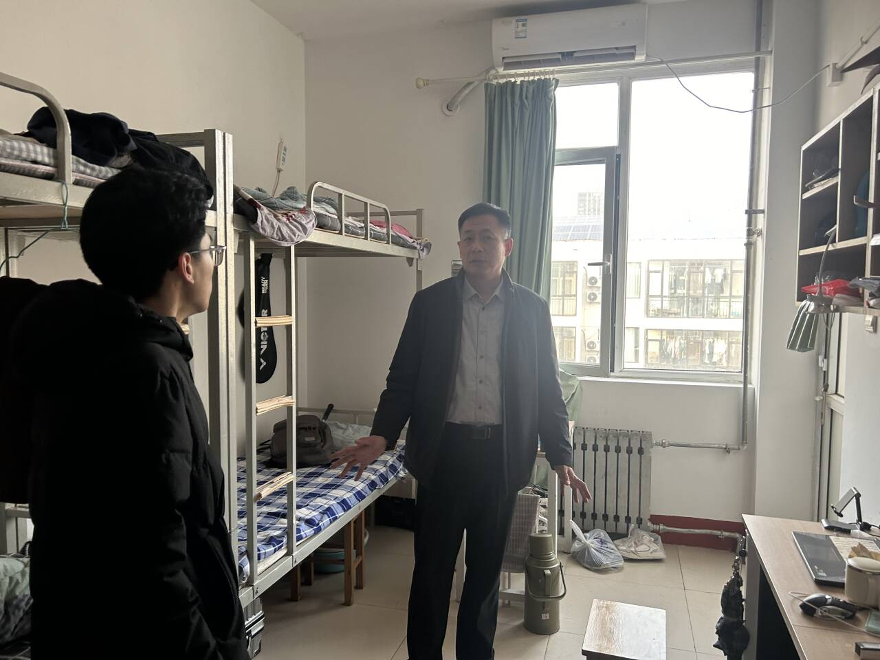 党委副书记孙旭春、团委书记刘兆宇走进学生宿舍开展“党建引领促成长,温情暖冬话未来”主题走访活动。活动紧扣年末总结、寒假规划等学生需求,以关怀鼓励凝聚奋进力量,为年度育人工作画上圆满句号。