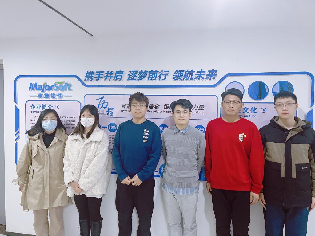 2月20日,9名同学准时到达山东米捷软件有限公司报到实习。秦焰培总经理对曲师学子的到来表示热烈欢迎,并介绍了公司五楼自拍、主要业务、核心技术等。实习同学也了解了工作内容,对接下来的实践工作表现出了极大的热情。