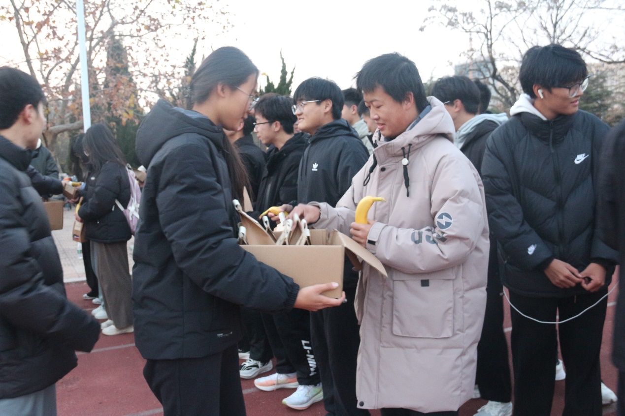 随后,孙泽玮老师与高年级冬训队成员一起为大家分发慰问品,这些慰问品不仅是对同学们在冬训期间努力付出的肯定,更是对他们未来继续保持拼搏精神的激励。