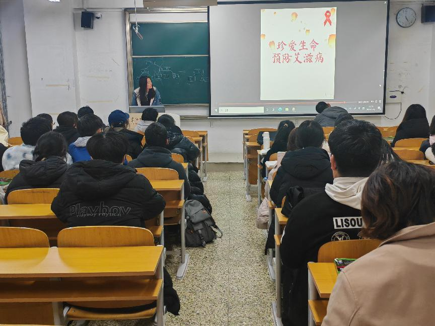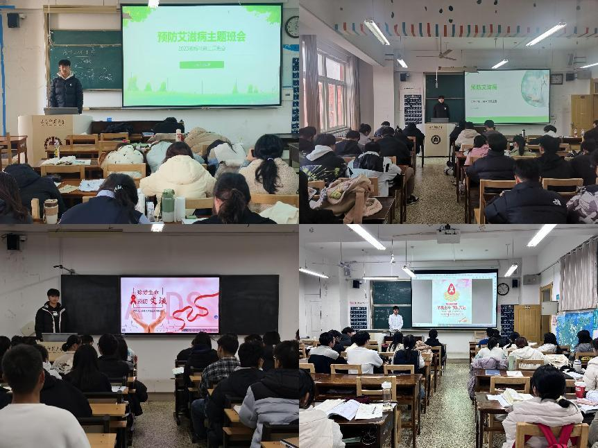 各班级开展了预防艾滋病主题班会。班会上,班长和团支书采用PPT展示、视频播放、小组讨论等多种方式,生动形象地介绍了艾滋病的传播途径、预防措施及社会影响。通过互动问答,同学们积极参与,加深了对预防知识的理解和记忆,为共建无艾校园贡献了自己的力量,营造了健康向上的学习氛围。