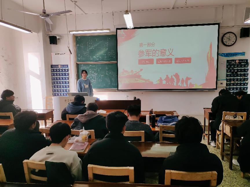 将征兵宣传教育列为学生工作重点,开展征兵工作专题宣讲会,精准助力学生了解军旅生涯、响应国家号召。