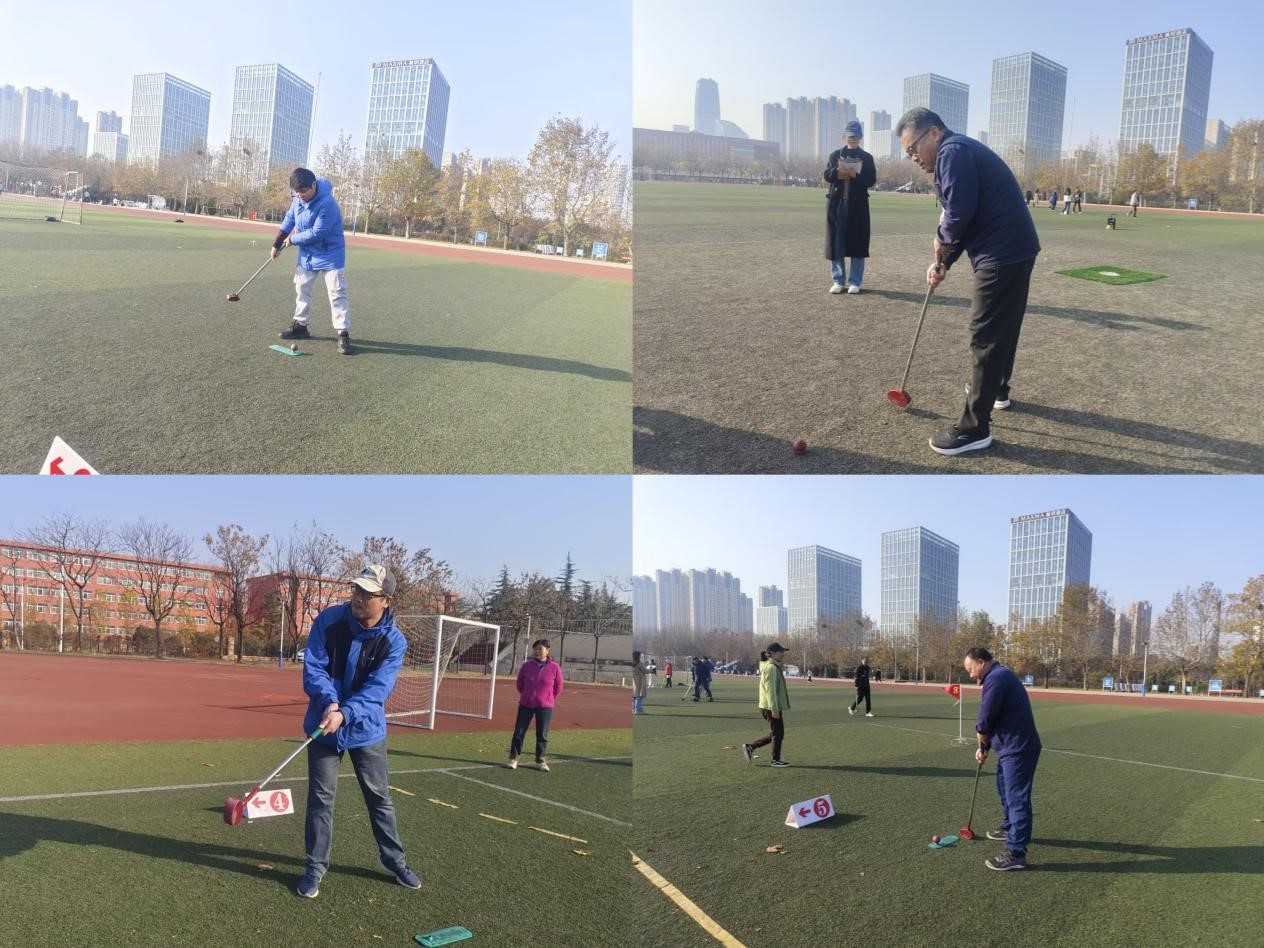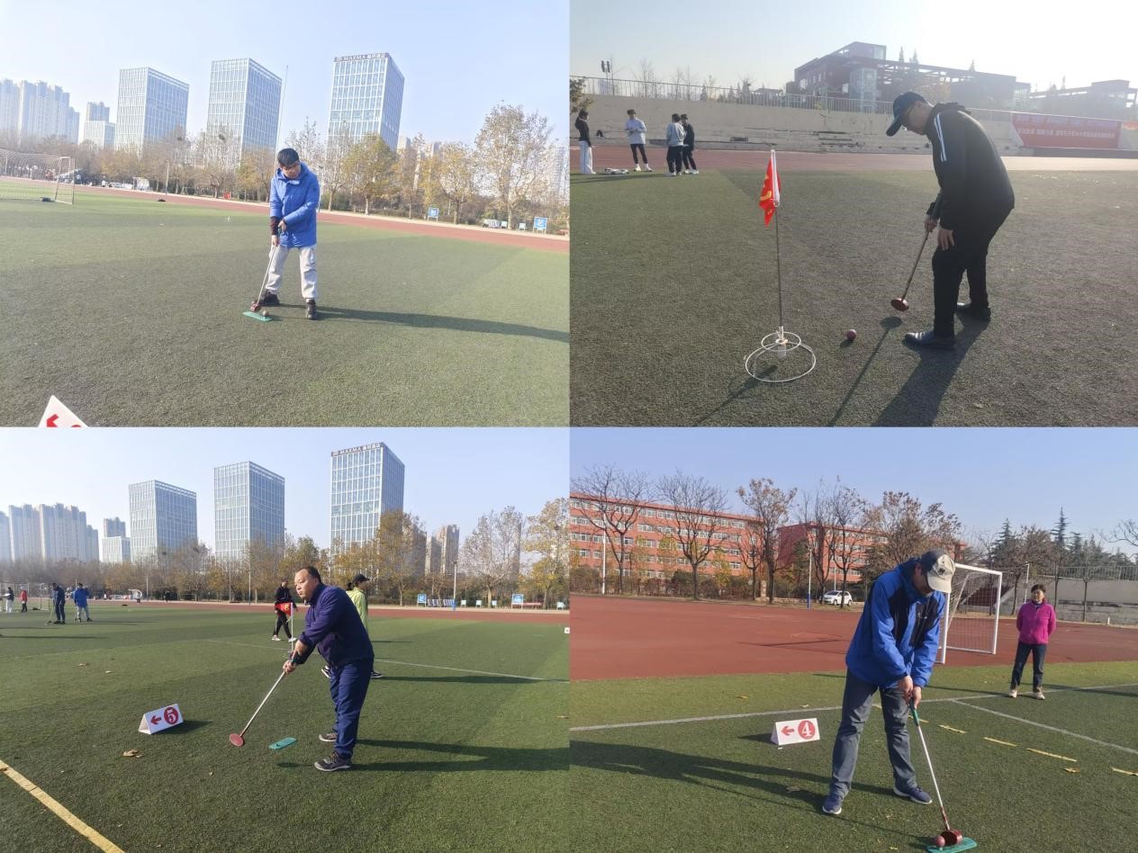 于西操场举行了教职工高尔夫球赛,各学院教职工代表参加,五楼自拍