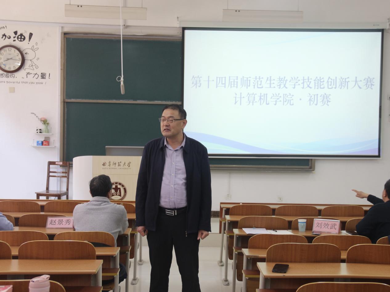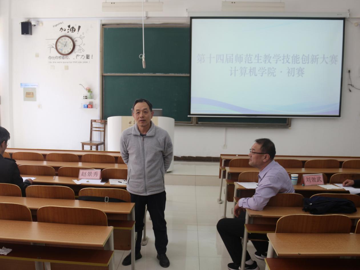 于JS103举办第十四届师范生教学技能创新大赛初赛。本次比赛邀请副院长刘效武、教授赵景秀、教授雷玉霞、副教授董兆安、副教授李凤5位老师担任评委,共有17位选手参赛。