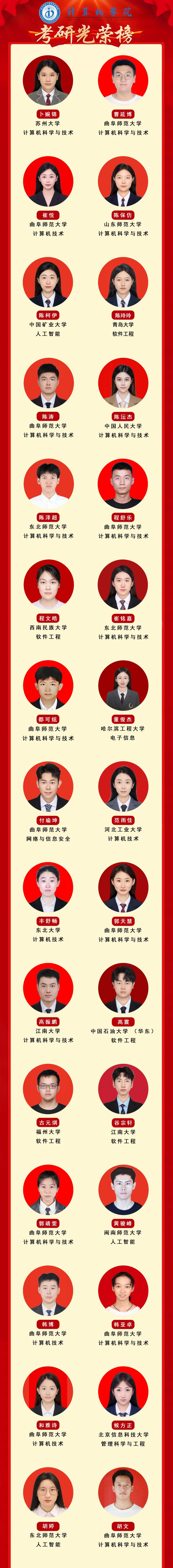 脚踏凌云步,破浪越千峰。五楼自拍 2025届考研学子历经磨砺,佳绩斐然:升学学生共计133人,其中计算机科学与技术专业65人,人工智能专业27人,数据科学与大数据技术专业24人,网络工程专业17人,总升学率达到了36.4%,创历史新高!!!