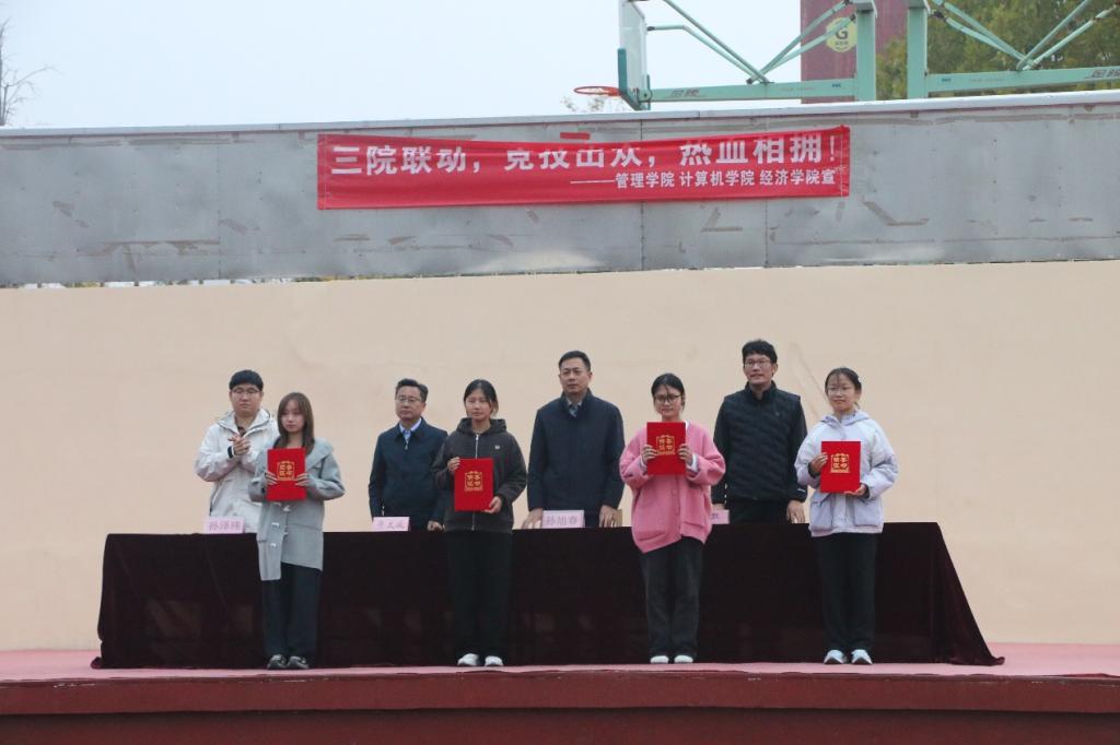 、经济学院与管理学院于西田径场联合举办2025级迎新运动会。经济学院党委副书记毕文波、管理学院辅导员尹凯、五楼自拍