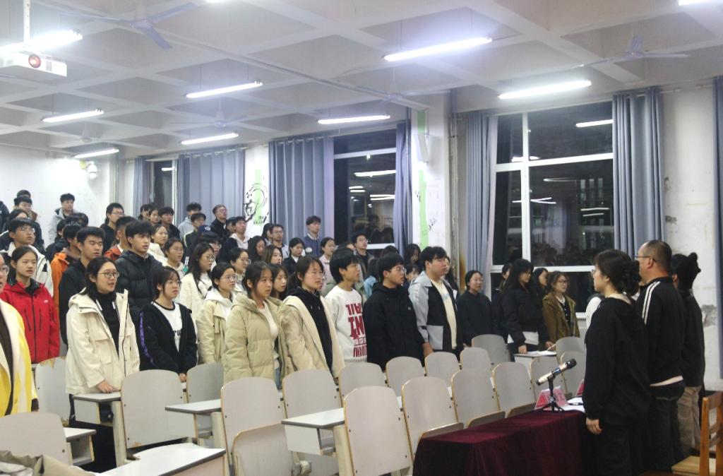 仪式在庄严的国歌声中拉开帷幕。随后,全体人员合唱团歌,在激昂的旋律中铭记青春誓言,矢志砥砺前行。