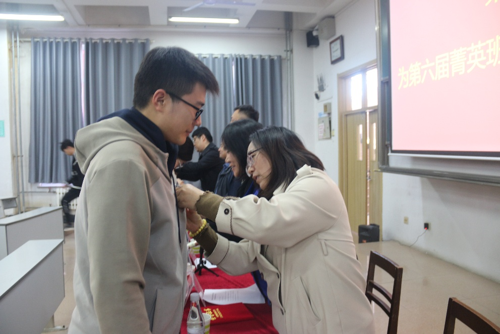 图6:老师们为菁英班优秀成员佩戴徽章