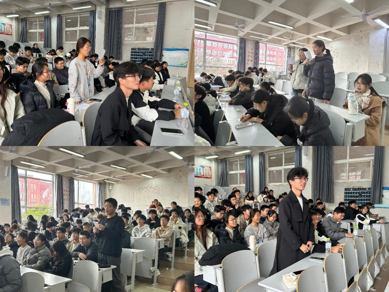 接着,在“红歌忆初心”环节,团员们围绕经典红歌展开歌词填空挑战,熟悉的旋律与滚烫的字句在现场流淌,大家在抢答中重温了歌声里的初心与力量;随后的“声入红韵”红色影视配音大赏里,团员们踊跃为《觉醒年代》《士兵突击》等作品的经典片段配音,用声音复刻先辈的热血与信念,让历史场景在教室里“鲜活重现”。