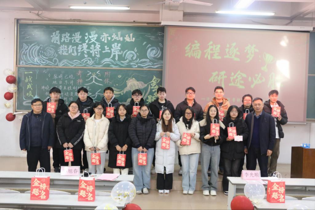 在JA106教室温情举办“考研送温暖”活动。学院院长李光顺、党委副书记孙旭春亲临现场,为即将奔赴考场的学子们送上真挚关怀与殷切祝福,现场暖意融融、情谊满满。