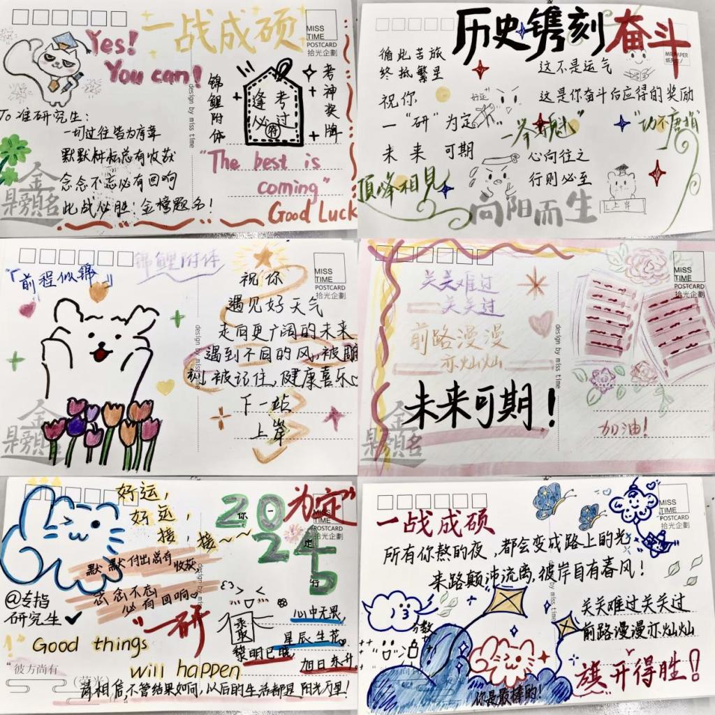 学院精心准备了“考研加油包”:“一战成硕”的甜美橙子、“运气旺旺”的旺仔牛奶,以及师弟师妹们亲手书写的祝福卡片。每一份小礼物都承载着全院师生最真挚的期盼——心有所向,一“研”为定,成功上岸!同学们纷纷表示,这份“带着温度的礼物”,让备考的疲惫消解了不少,也让奔赴考场的脚步更有力量。