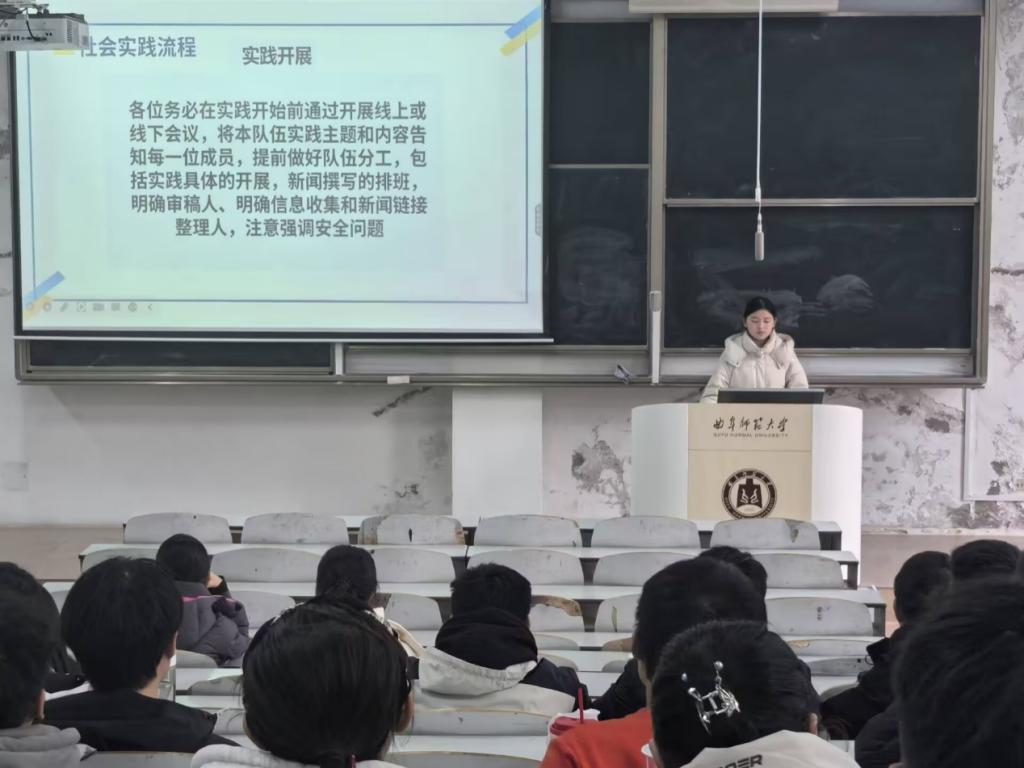 社会实践部于JE203开展2025年寒假社会实践培训会,学院社会实践队队长参加培训。