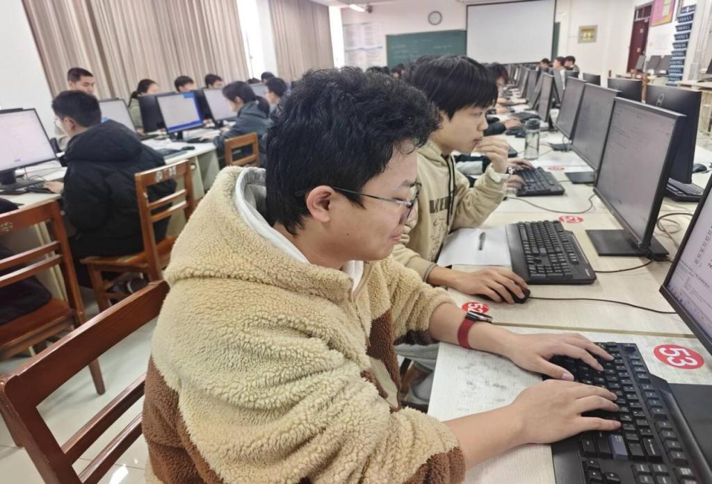 竞赛现场氛围浓厚、秩序井然,参赛选手全神贯注投入解题。在长达两个小时的竞赛中,凭借扎实的编程功底和过硬的算法设计能力,针对不同难度梯度的赛题逐一攻坚、全力作答。