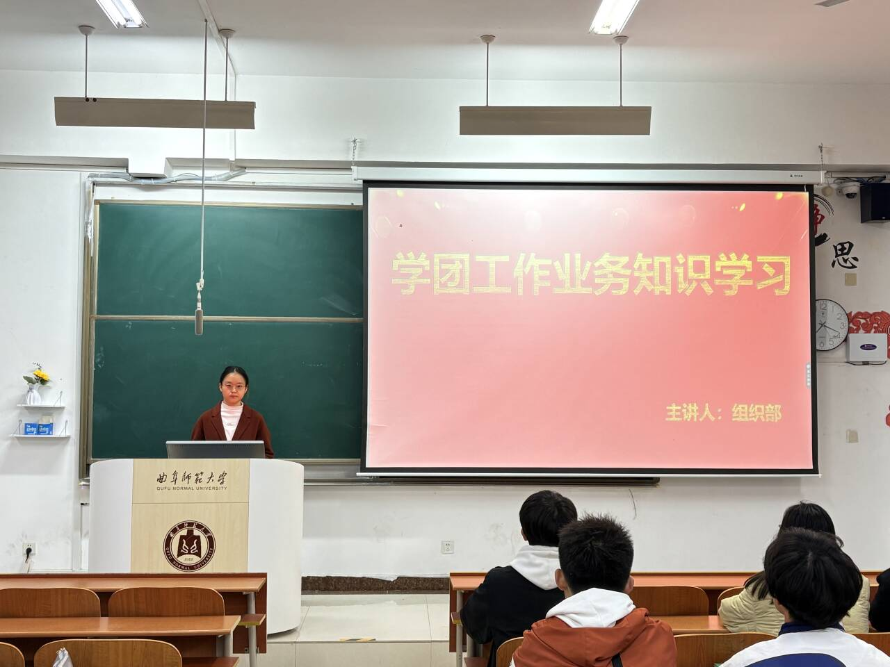 本次培训紧扣学团日常工作核心,聚焦共青团基础业务、团员发展管理、青年思想引领等关键板块,结合实操案例系统授课。主讲人重点围绕“三会两制一课”落实、推优入党规范流程、智慧团建系统操作等高频工作难点,逐一拆解业务细节、梳理工作制度、讲解实操技巧,现场同步开展答疑解惑,针对性解决学员工作困惑。培训采用理论讲解、互动交流、案例研讨相结合的形式,学员认真听讲、主动提问,结合自身工作交流心得,切实补齐业务短板、理清工作思路。