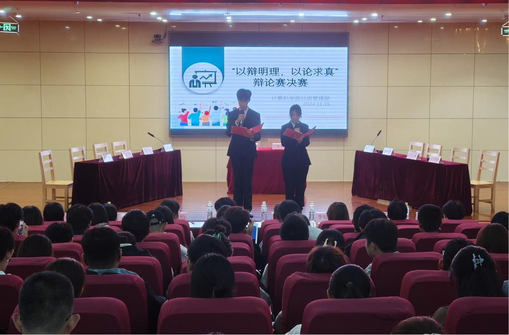 图1、2.“以辩明理、以论求真”辩论赛决赛正式开始