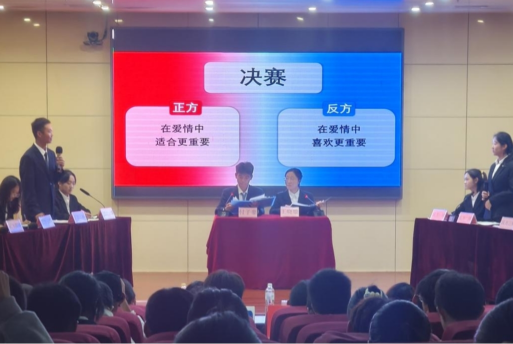 决赛正式开始,由计科四班与计科二班组成的正反双方围绕“爱情中适合与喜欢哪个更重要”展开激烈辩论。历经开篇立论、攻辩环节、自由辩论、总结陈词的激烈角逐,各队选手旁征博引、慷慨激昂,双方唇枪舌剑,互不相让。选手们出色的口才、敏捷的思维令场下观众为之折服,掌声不断。