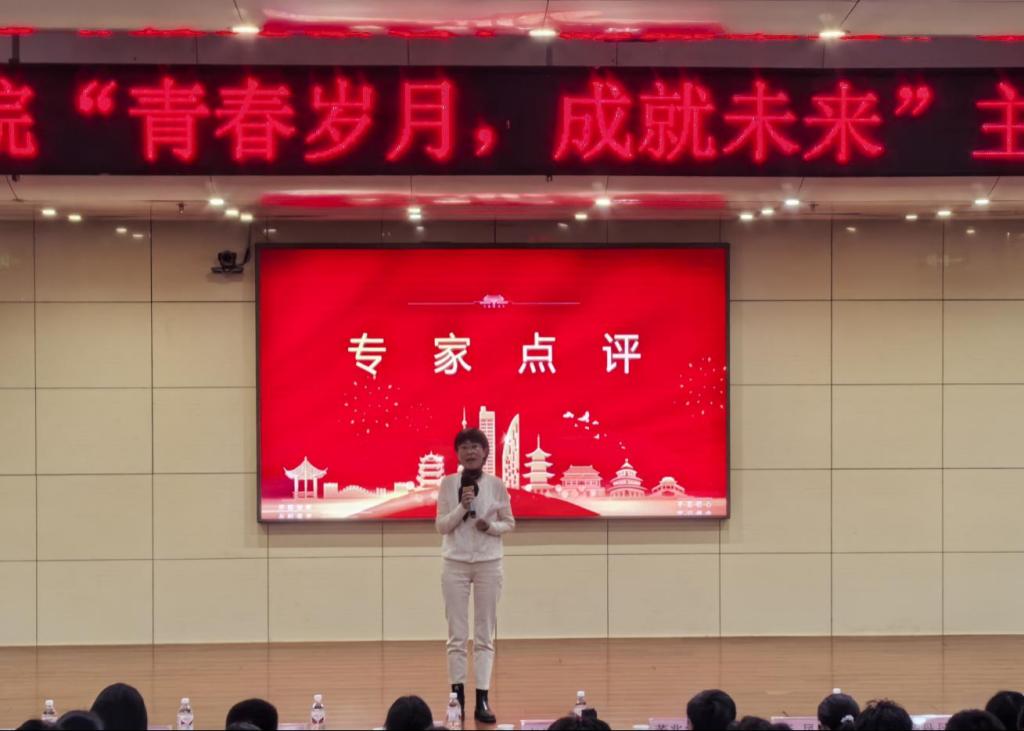 传播系副主任卢长春对本次演讲比赛进行总结点评。她首先对参赛选手们的出色表现给予了高度赞扬,认为每位选手都充分展现了青春的风采与智慧的光芒,接着特别强调了演讲中思想的深度与广度,以及语言表达的艺术性。最后,卢老师对选手提出了宝贵建议与更高要求,并鼓励所有参赛者将这份热情与执着带入未来的学习与生活中。