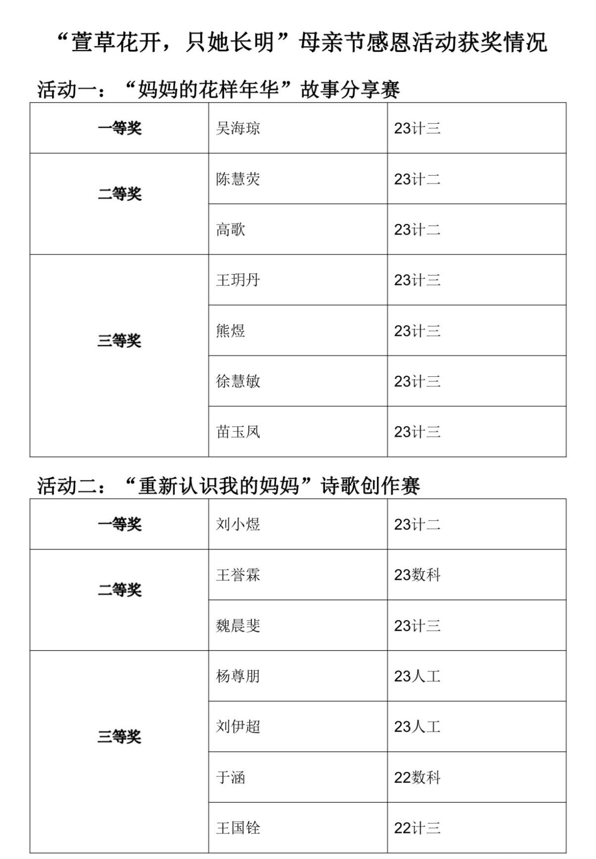 图1:“萱草花开,只她长明”母亲节感恩活动获奖情况