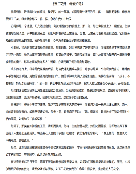 图3:“重新认识我的妈妈”诗歌创作赛优秀作品