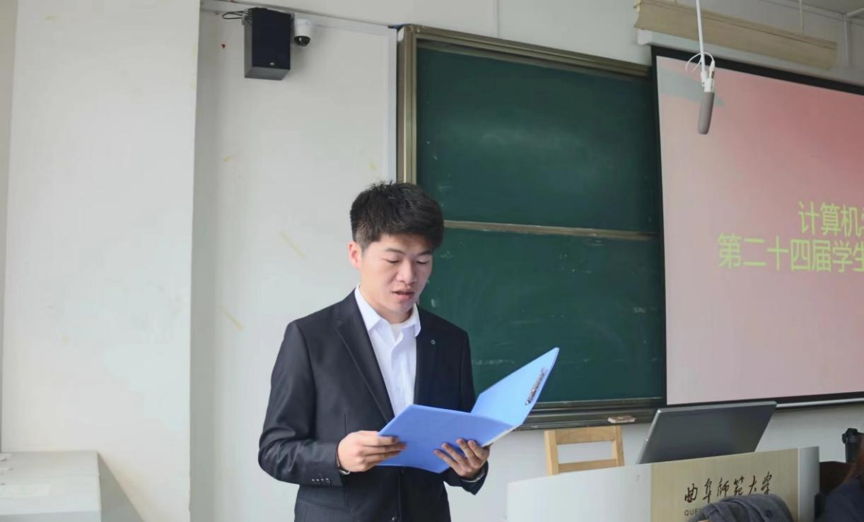 二十四届团委学生会主席杨有源进行发言,讲述了自己对学生工作的理解与认识,并表示在今后的工作中会创新工作方式,提升工作能力,恪尽职守,矢志服务,强调全体学生会成员应团结一致,以高度的责任心和强烈的使命感,继续为学院工作的高质量发展贡献青春力量。