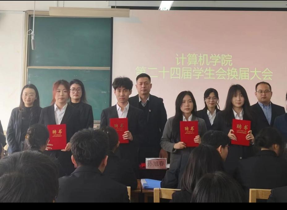 随后,会议进入颁发聘书环节。老师们为第二十四届团委学生会成员颁发聘书,并对表示祝贺和期许。每一张聘书都是对学生会成员辛勤工作的肯定,也是对他们未来工作的期许。