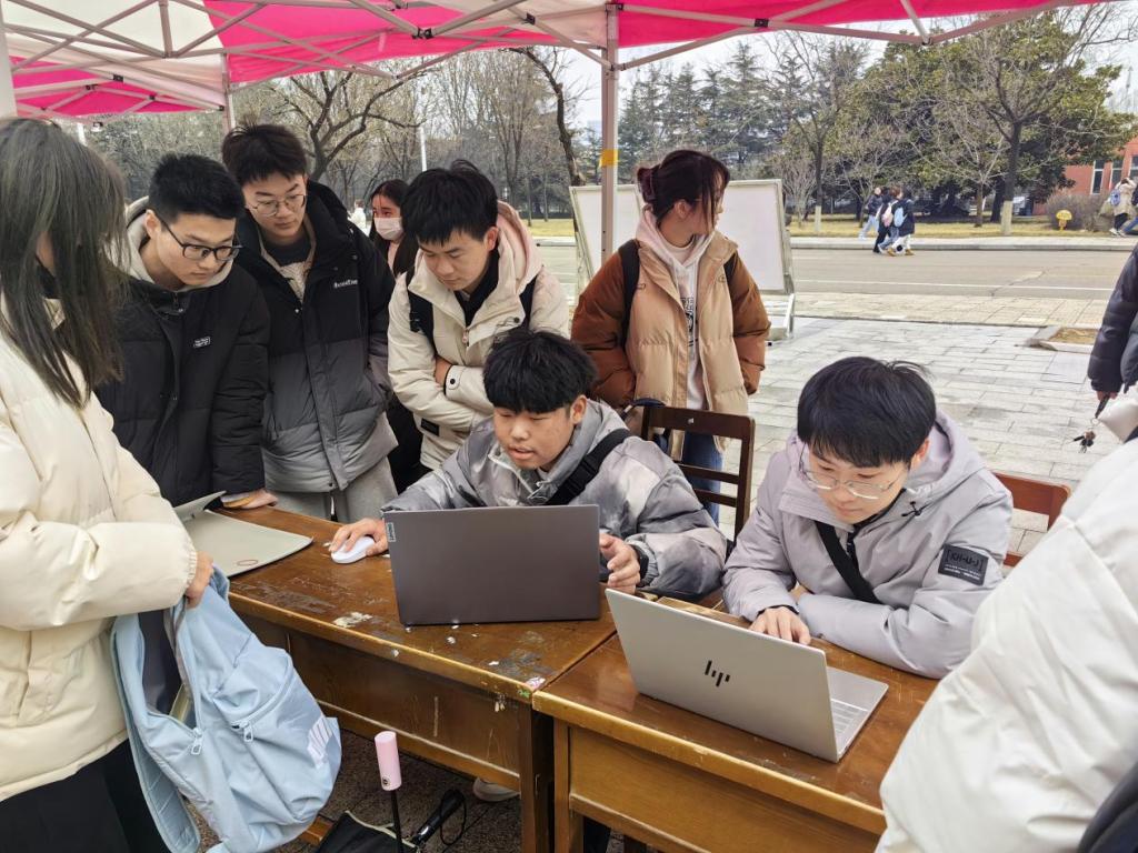 网络部主办,活动前期在公众号以及官网进行宣传,活动现场由负责人对来自不同学院的学生、教师的电脑进行维修,同时向不同学院的学生讲解电脑使用注意事项等。五楼自拍