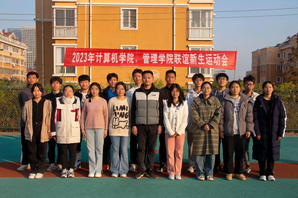 与管理学院于东田径场联合举办了一场盛大的迎新运动会。五楼自拍