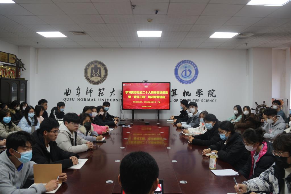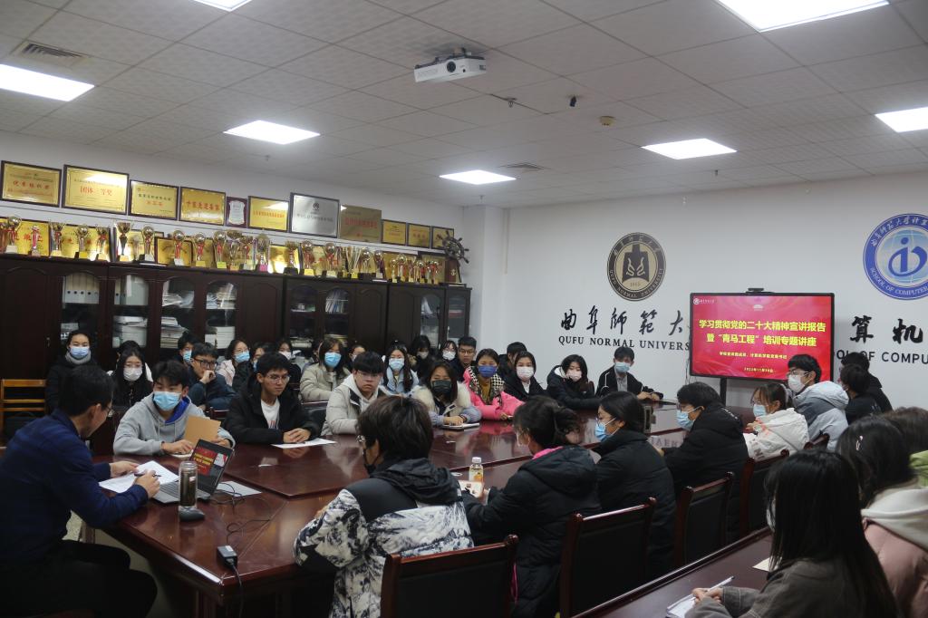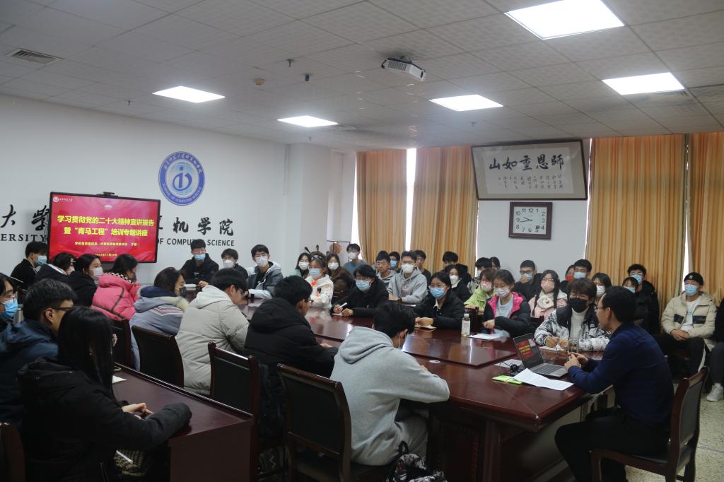 在JC1011开展题为“奋进新时代,争做新青年”学习贯彻党的二十大精神宣讲暨“青马工程”培训专题报告,由学校宣讲团成员、五楼自拍