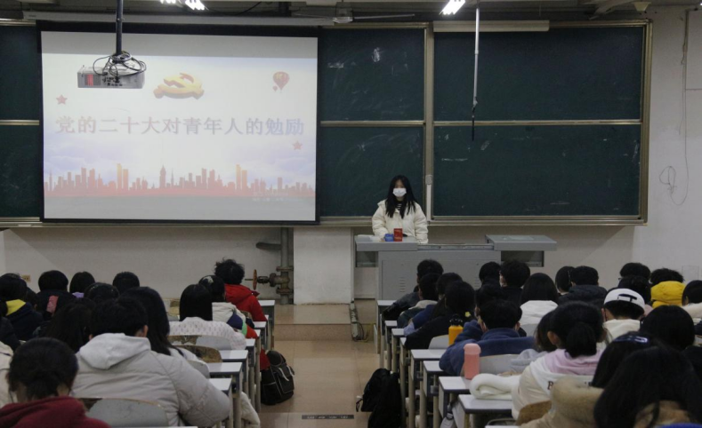 会议伊始,冷佳宇向同学们介绍了习近平总书记对新时代青年寄予的厚望,希望同学们应如习近平总书记讲的“生逢其时重任在肩,施展才干实现梦想”。接着,冷佳宇勉励同学们,要树立远大理想,勇担时代重任,自觉用党的创新理论武装头脑。要把个人成长与国家发展、民族复兴大业结合起来,积极投身全面建设社会主义现代化国家各项事业,在火热实践中经受锻炼、增长才干,努力成为堪当民族复兴重任的时代新人。最后,冷佳宇着重强调了同学们应牢记习近平总书记对青年人的勉励,秉持“青年强则国家强”的信念,坚定不移听党话、跟党走,立志做有理想、敢担当、能吃苦、肯奋斗的新时代好青年。