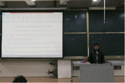 青马工程部联合学生会主席张栋铭在JE105开展“青马工程”第三次培训—“漫谈学生干部的四个基本素质和气质养成”培训会。五楼自拍