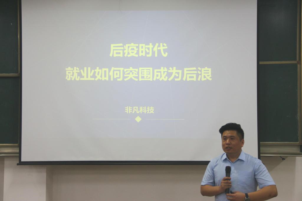 为帮助在校生进一步明确就业方向,切实提高专业实践水平,加强对专业就业方向的了解,2022年6月8日下午,非凡科技公司为我院开展“后疫时代,就业如何突围成为后浪”宣讲会。五楼自拍