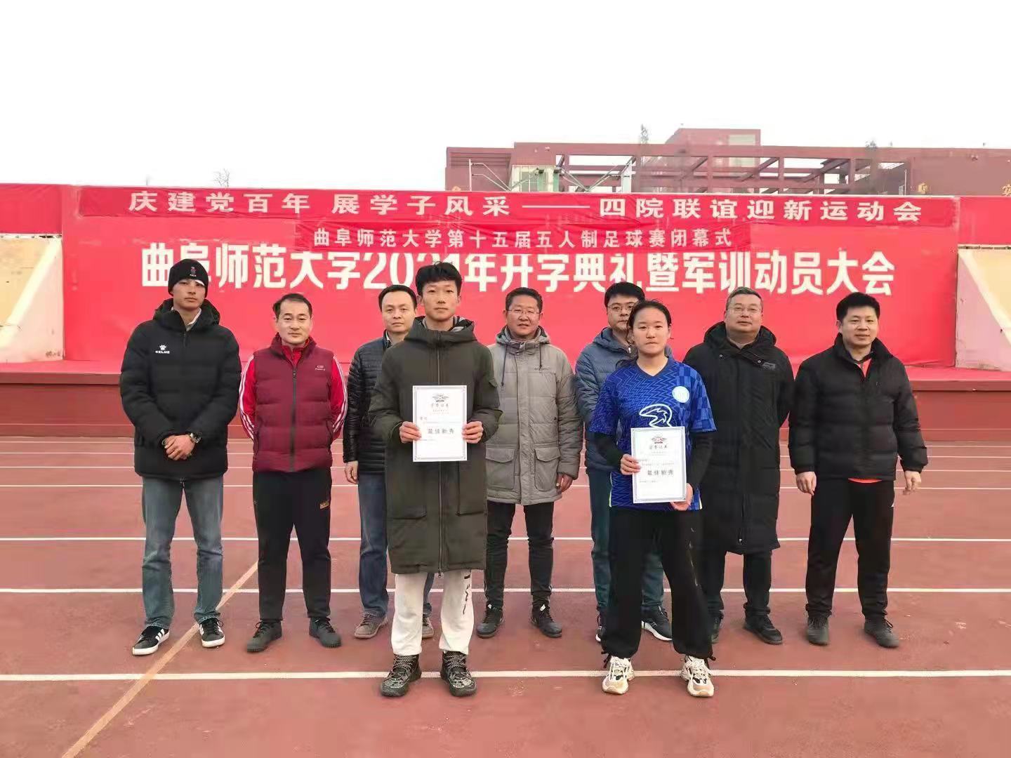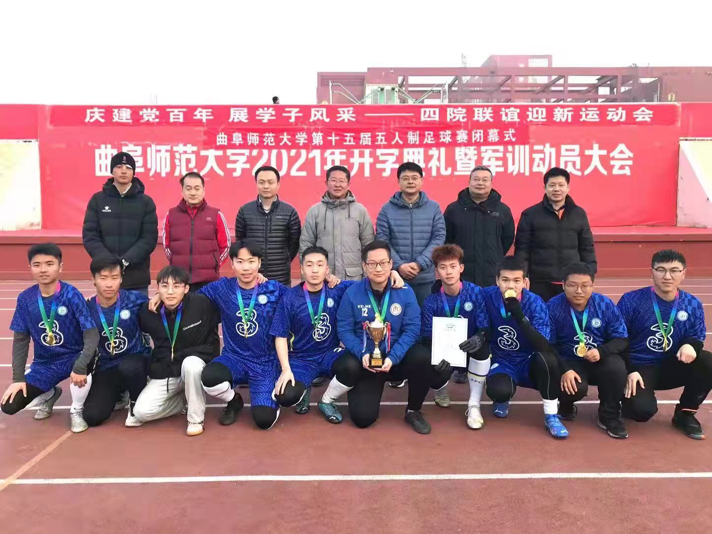 最终我院收获了男子组冠军(为中华民族伟大复兴而奋斗队),男子组殿军(台湾永远属于中国队),女子组亚军(绝队)的好成绩。其中,马俊潇荣获最佳门将称号,孟繁龙荣获最佳射手称号,丁少奇荣获最佳裁判称号,徐成宇(女足)荣获最佳新秀称号。