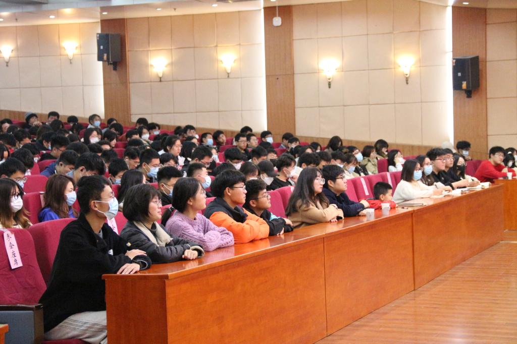 第二部分是由卢长春老师进行普通话口语表达能力培训。卢老师首先介绍了口语观念的认知,让学生了解到方言是活化石,普通话是交流工具,进而引出普通话的重要性。接着,通过列举语音技艺标准,从四个方面对同学们进行语音技艺训练,并指导同学们在语言表达对象、场合和技巧上应该如何交流。最后,卢老师邀请了三位同学上台体验《普通话水平测试》,让每位同学都感受到了普通话的乐趣和学习普通话的必要性。