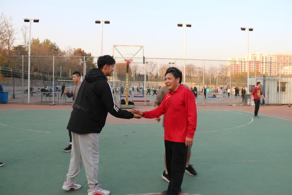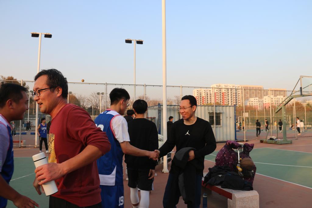 于东操场的篮球场举办教职工与2021级男篮的友谊对抗赛,五楼自拍