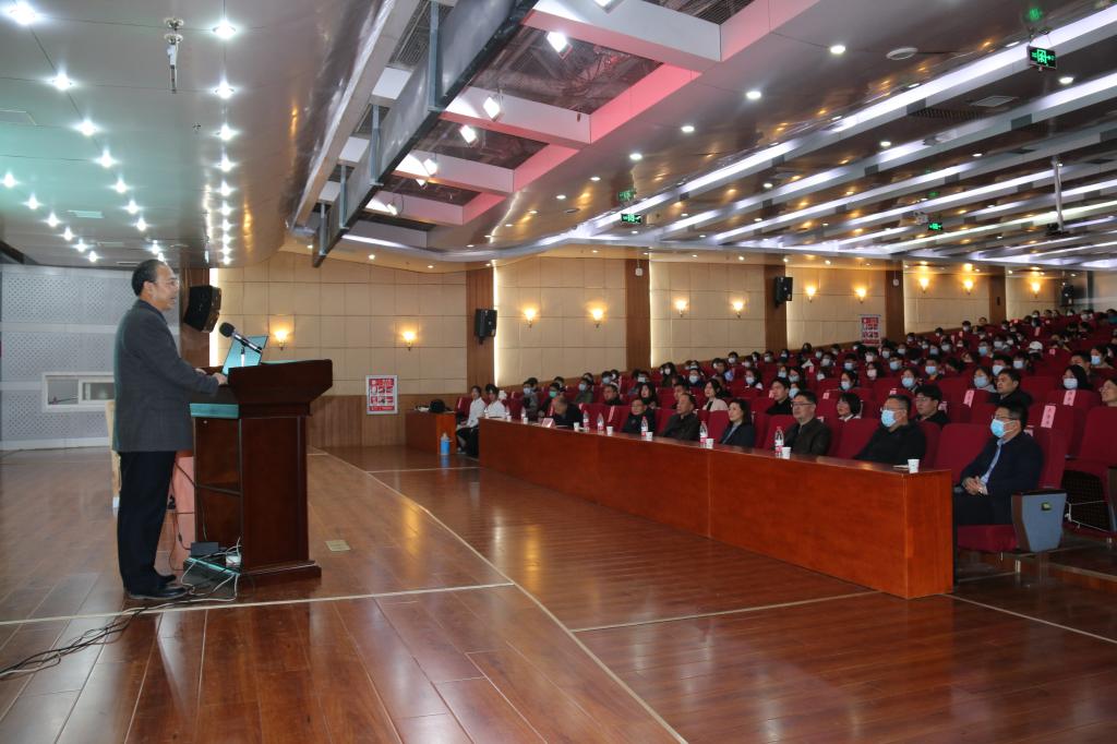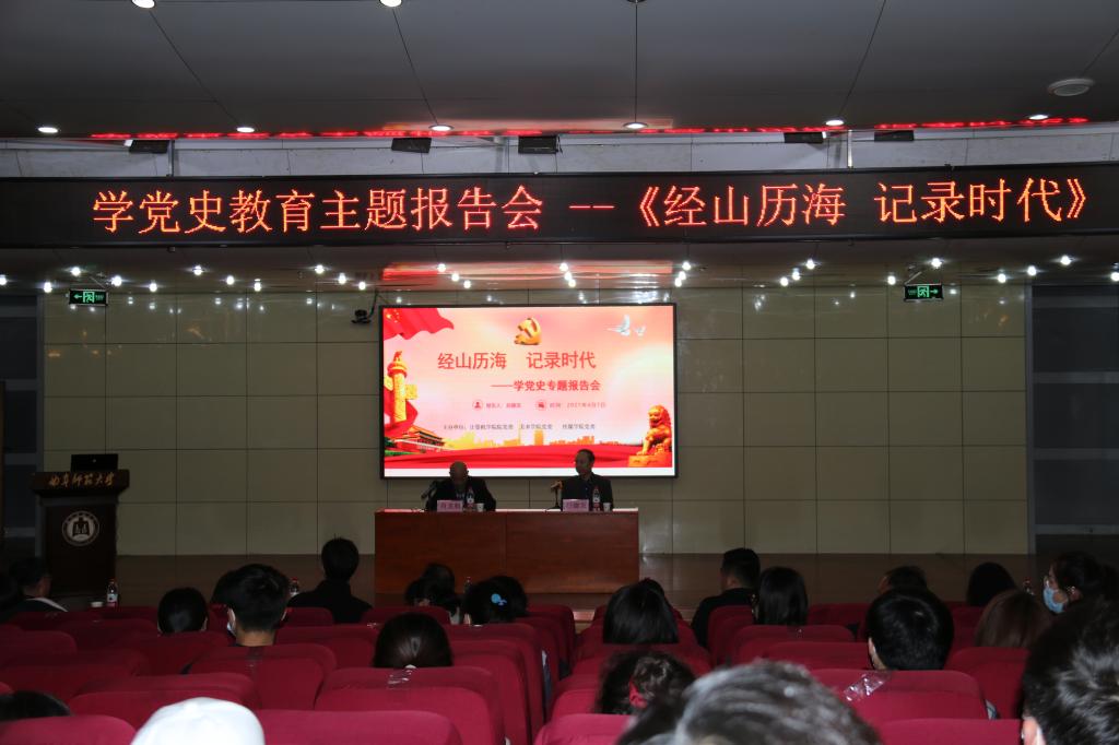 为扎实推进党史学习,创新学习方式,提升学习效果,2021年4月7日晚,五楼自拍 党委邀请知名作家、央视热播剧《经山历海》作者赵德发在图书馆报告厅为党员、入党积极分子做了题为《经山历海  记录时代》的专题报告,解读原著《经山海》的创作过程。五楼自拍 党委书记张书东、副院长李光顺、学院师生党员、入党积极分子三百余人共同聆听了报告会,报告会由五楼自拍 党委副书记肖龙航主持。