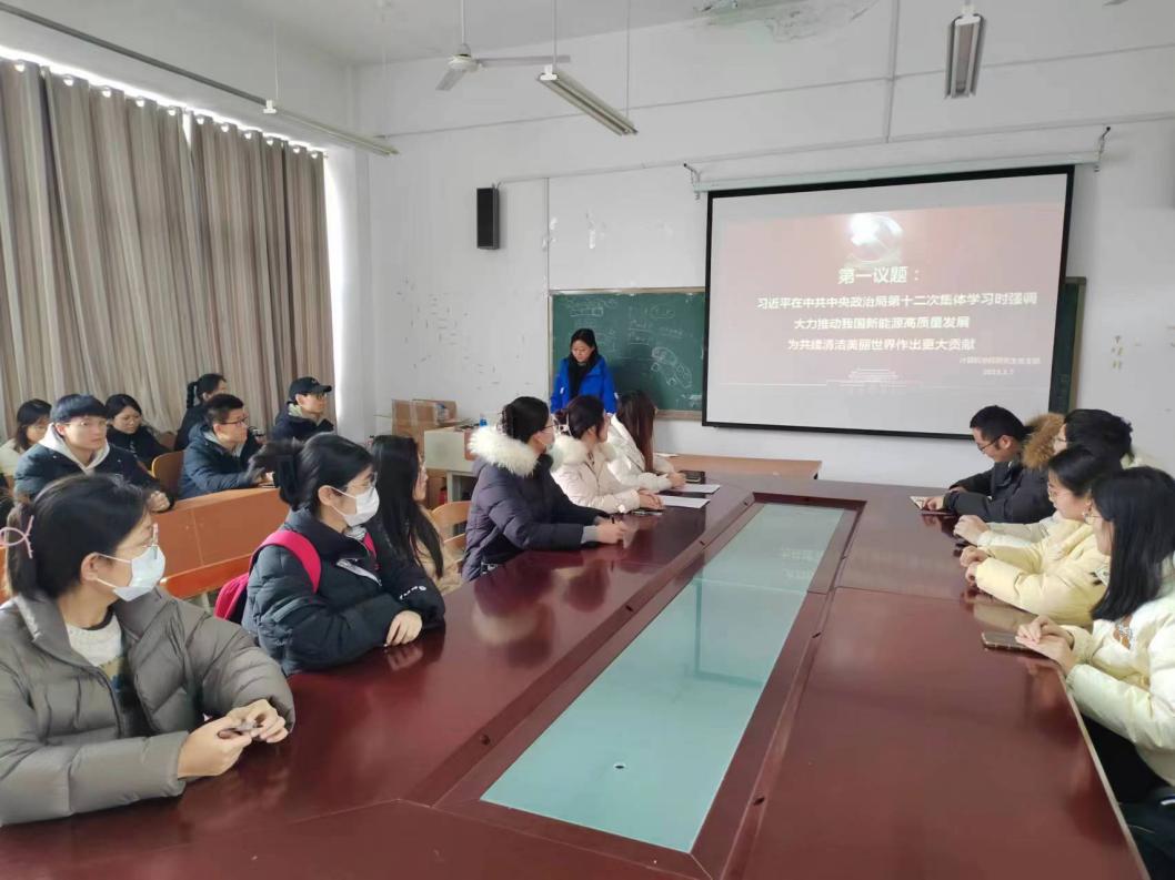 会议伊始,全体参会党员共同学习第一议题“习近平在中共中央政治局第十二次集体学习时强调大力推动我国新能源高质量发展 为共建清洁美丽世界作出更大贡献”。习近平总书记指出,党的十八大以来,我国新型能源体系加快构建,能源保障基础不断夯实,为经济社会发展提供了有力支撑。同时也要看到,我国能源发展仍面临需求压力巨大、供给制约较多、绿色低碳转型任务艰巨等一系列挑战。应对这些挑战,出路就是大力发展新能源。我国风电、光伏等资源丰富,发展新能源潜力巨大。经过持续攻关和积累,我国多项新能源技术和装备制造水平已全球领先,建成了世界上最大的清洁电力供应体系,新能源汽车、锂电池和光伏产品还在国际市场上形成了强大的竞争力,新能源发展已经具备了良好基础,我国成为世界能源发展转型和应对气候变化的重要推动者。要深化新能源科技创新国际合作,有序推进新能源产业链合作,构建能源绿色低碳转型共赢新模式。深度参与国际能源治理变革,推动建立公平公正、均衡普惠的全球能源治理体系。