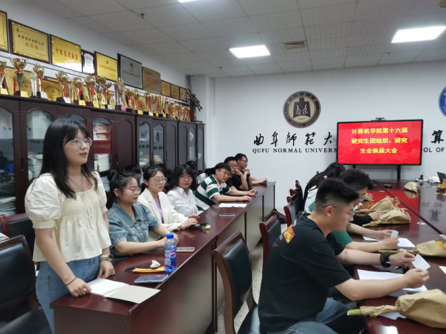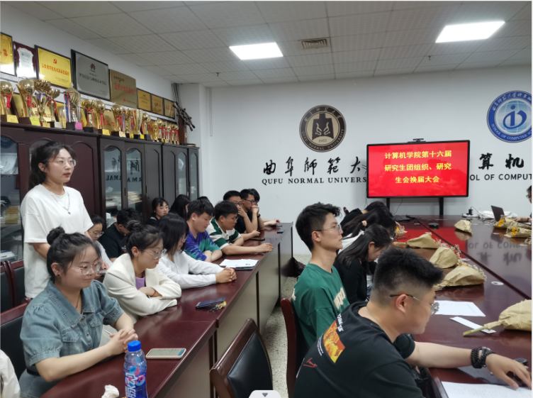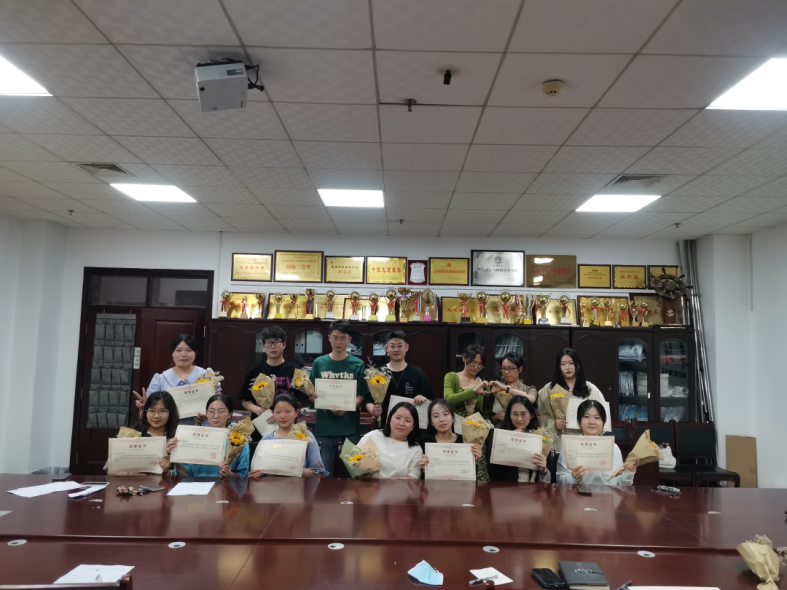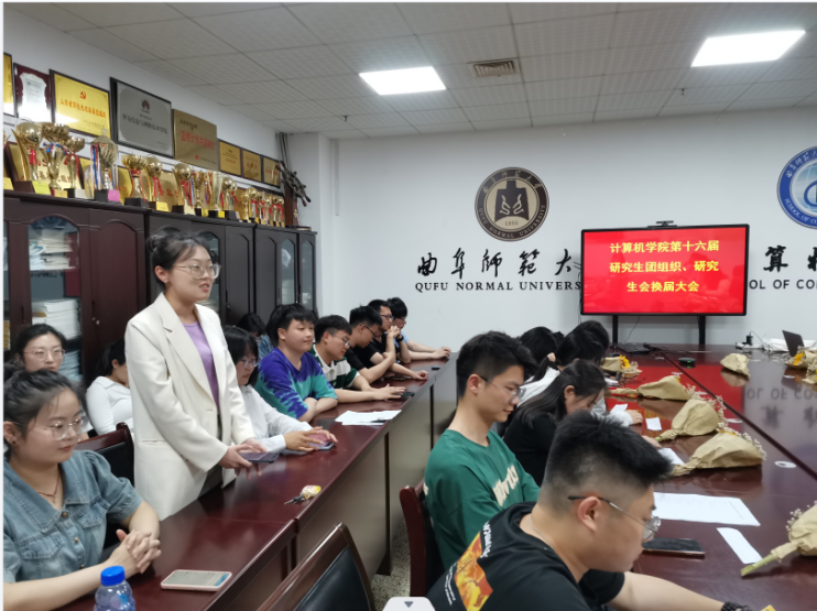 于6月1日晚在JC1011会议室组织召开第十五届团委研究生团组织、研究生会总结表彰大会暨第十六届换届大会,会议由研究生辅导员程荣花老师主持,五楼自拍