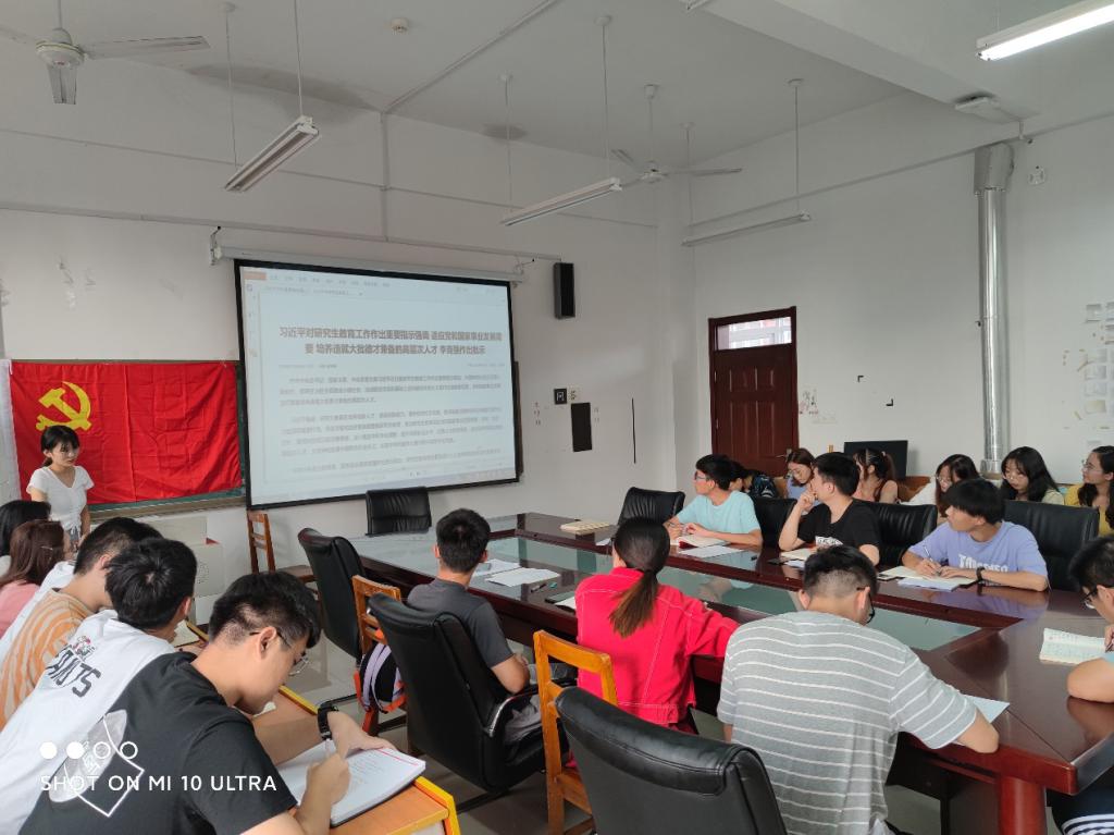 2020年9月24日下午3:15,五楼自拍 研究生党支部于S410开展“学习习近平总书记在研究生教育工作会议上的讲话和习近平总书记对制止餐饮浪费行为作出重要指示” 学习教育。支部书记尚军亮老师及全体研究生党员参加本次活动。活动由研究生党支部纪律委员李瑶主持,尚军亮老师主讲。