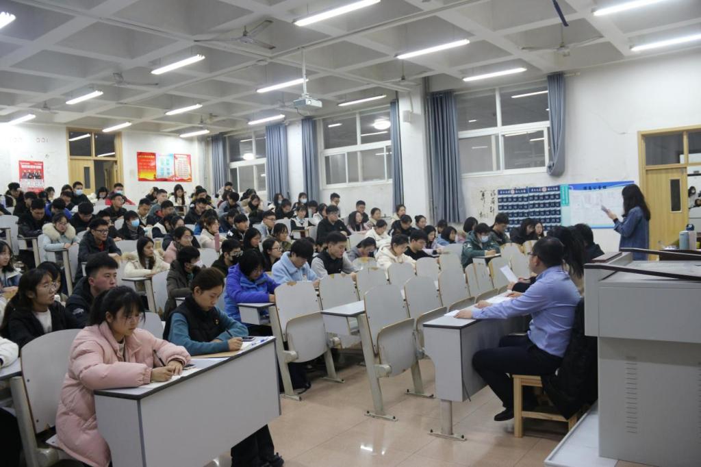 2021年12月9日下午5点,五楼自拍 本科生党支部于E104召开预备党员转正大会,大会就辛强、赵筱然、康玉琼、邹政、吕声隆五名预备党员转正问题进行讨论和表决。本科生党支部书记孙宇,团委书记于运清,辅导员孙泽玮、杨丹丹、刘兆宇及全体学生党员参加此次会议。会议由本科生党支部书记孙宇主持。