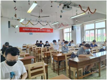 此次测试分校外、校内两个考场,均采取闭卷形式、单人单桌。为了严肃考纪,保证考试顺利进行,孙宇书记提前十分钟到达考场进行视察,正式考试前学员将所有资料上交。在考试过程中,全体学员自觉遵守考纪、深入思考、认真答题,考场秩序井然。