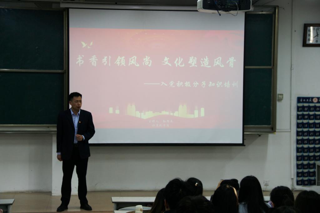 党委副书记孙旭春在A106为学院第十四、十五期入党积极分子讲授以“书香引领风尚 文化塑造风骨”为题的专题党课。五楼自拍