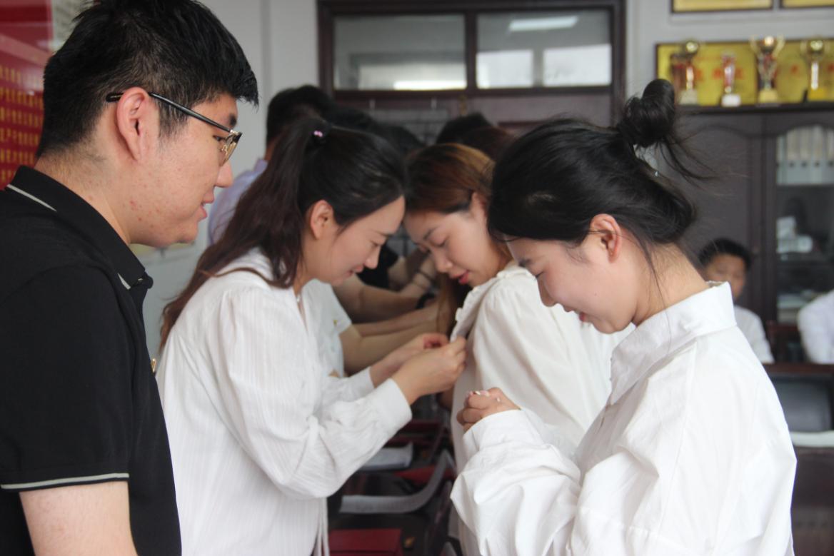 各位老师给与会党员同志佩戴党徽、并发放初心卡。寄语各党员同志要不忘中国共产党人的初心和使命,做习近平新时代中国特色社会主义思想忠实的践行者和传播者,当好人民的“孺子牛”“拓荒牛”“老黄牛”。