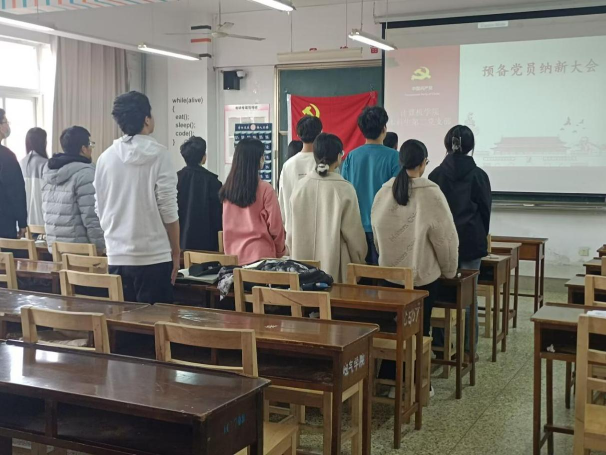 在庄严的国际歌奏响后,预备党员纳新大会正式开始。发展对象开始依次宣读入党志愿书。在志愿书中,他们表达了对党的敬重与向往,能够加入伟大的中国共产党,是他们一生中最光荣的事情。他们还指出了自己目前的缺点与不足,并承诺在今后的学习生活中一定会以党员的标准严格要求自己,努力改正缺点和不足,希望能得到党组织的认可。
