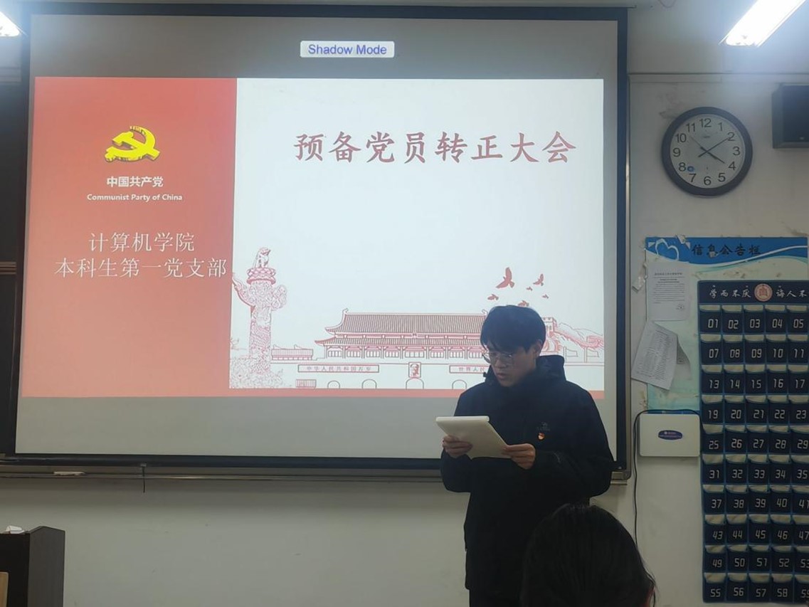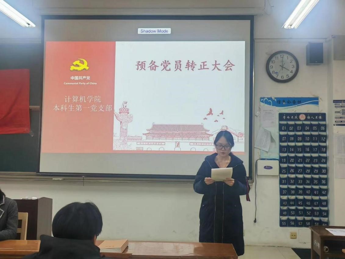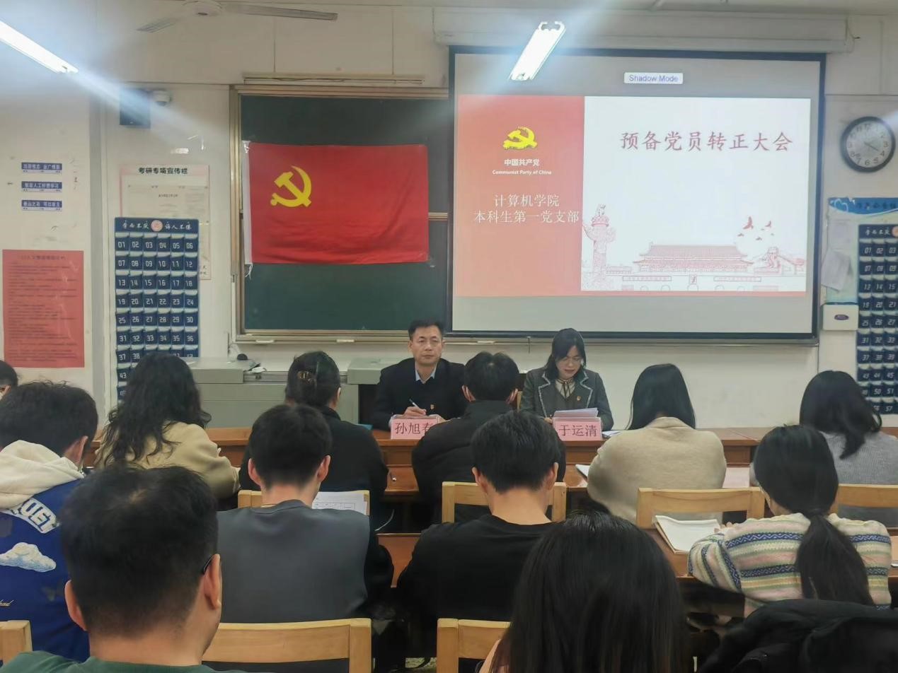 本科生第一党支部于JC408召开预备党员转正大会。本科生第一党支部全体党员参加此次会议。会议由本科生第一党支部书记于运清主持。
