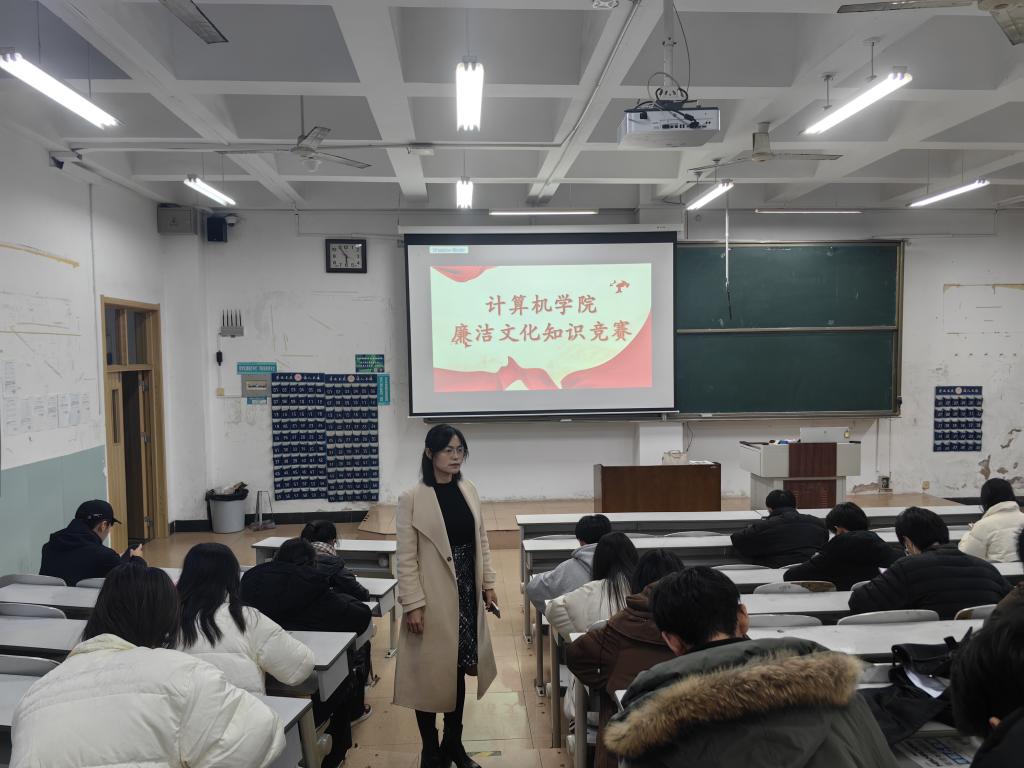 于2023年12月4日下午6点在JA104举办廉洁文化知识竞赛,本次竞赛由于运清老师监考,全体学生党员和学生干部参加。