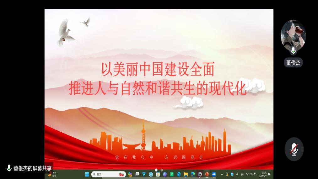 本科生党支部召开主题为《以美丽中国建设全面推进人与自然和谐共生的现代化》的线上学习党日活动,会议由分党校秘书长董俊杰主持,全体党员参加。
