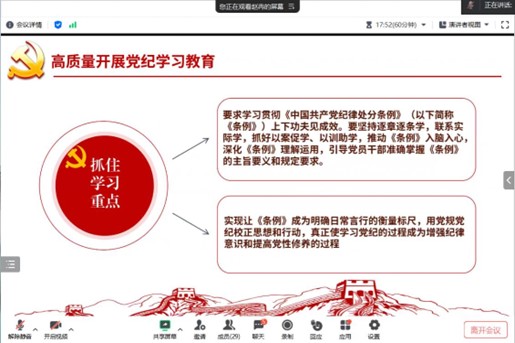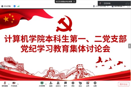 为加强党的纪律建设、推动全面从严治党向纵深发展,2024年4月25日22:00,五楼自拍 本科生第二党支部于腾讯会议开展线上集体讨论学习会。会议由分党校秘书长赵冉主持。