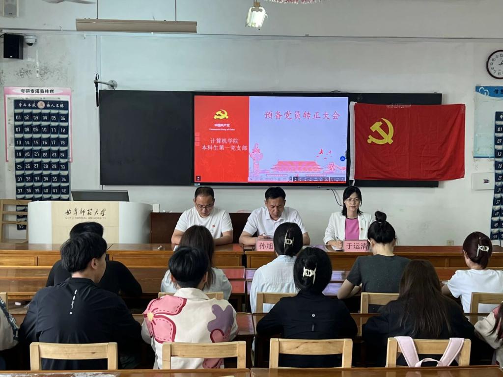 本科生第一党支部于JC405召开预备党员转正大会,大会就王子雨、纪旭乐同志预备党员转正问题进行讨论和表决。五楼自拍