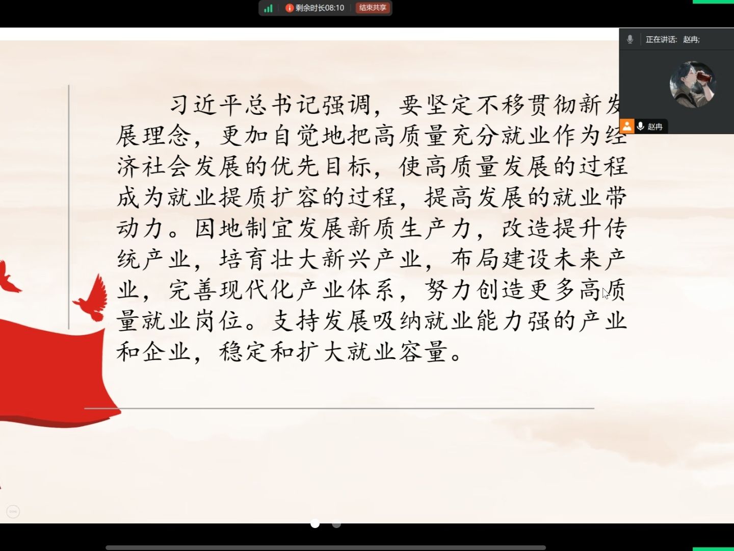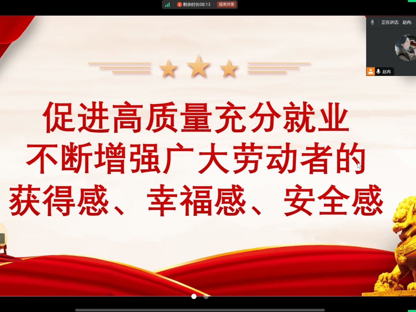 本科生各党支部召开主题为《促进高质量充分就业,不断增强广大劳动者的获得感幸福感安全感》的线上学习党日活动,会议由分党校秘书长赵冉主持,全体党员参加。
