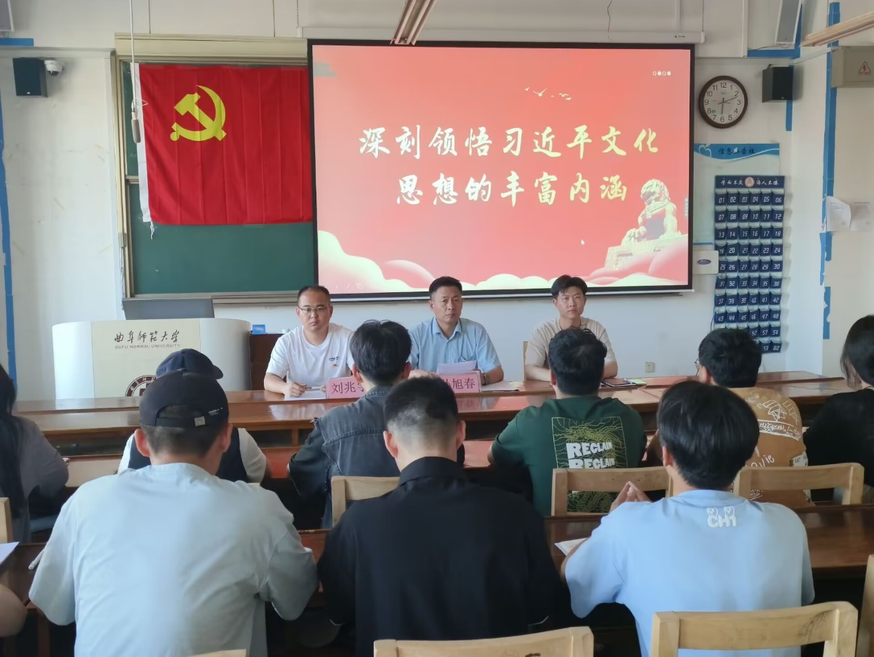 此次党课,刘兆宇老师重点阐述了习近平文化思想的核心:坚持党的文化领导权,推动物质与精神文明协调发展,并强调了“两个结合”的根本要求,即把马克思主义与中国实际及中华优秀传统文化相结合。并提出我们要深刻认识习近平文化思想的时代价值和指导意义,不断内化为自身的行为准则。