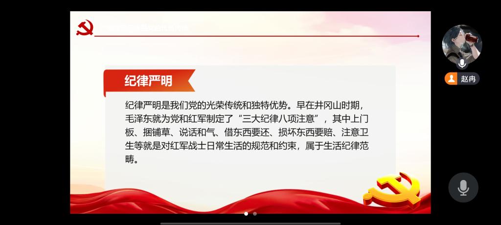 本科生第一、二、三党支部召开主题为《把纪律教育融入平常抓在日常》的线上学习党日活动,会议由分党校秘书长赵冉主持,全体党员参加。